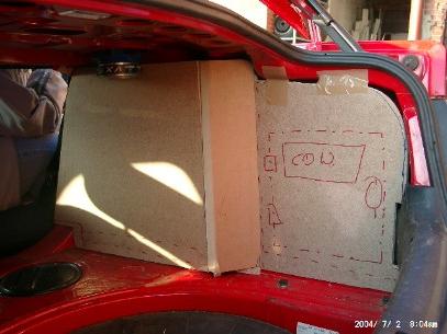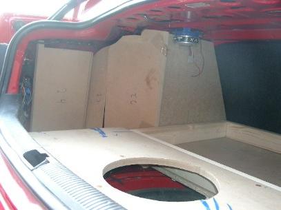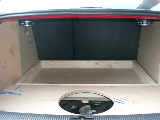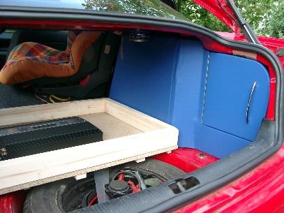 Der Kofferraumausbau einer Limo A4/B5Im Vordergrund stand, dass der Kofferraum seine Funktion noch behält. (Aber eingestränkt). Weil ja noch die klappbare Sportkarre von meiner Tochter reinpassen musste und der Einkauf.Wie man auf Bildern 3, 4 u. 5 sieht. War geplant das der 30er Sony Bass eben mit der Plexiglas-Scheibe (die über der Endstufe liegt) liegen sollte. Dann hätte ich auch 2 kleine Staufächer links und rechts neben dem Bass gehabt. (Bild 3 u. 4)
